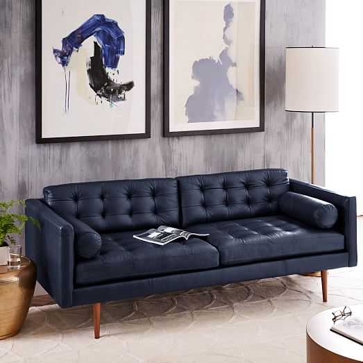 Monroe Mid Century Modern Leather Sofa | Wayfair