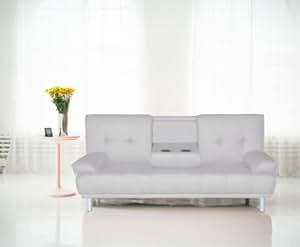 Faux Leather Sofa Bed With Storage And Cup Holders ...