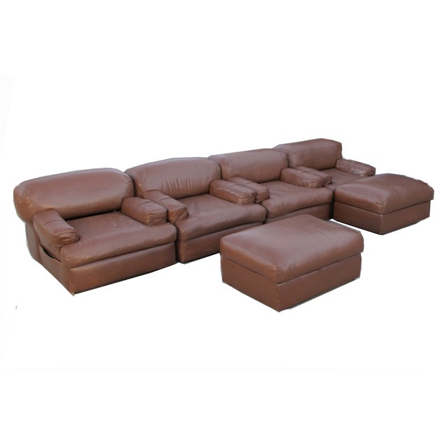 Custom Made Modular 70's Sectional Leather Sofa | Chairish