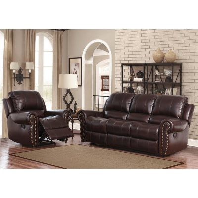Bentley Top-Grain Leather Reclining Sofa and Armchair ...