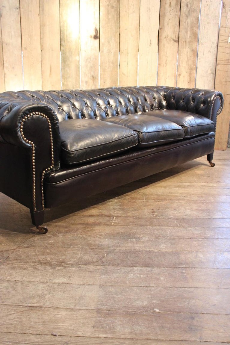 Black Leather Chesterfield Sofa For Sale at 1stdibs