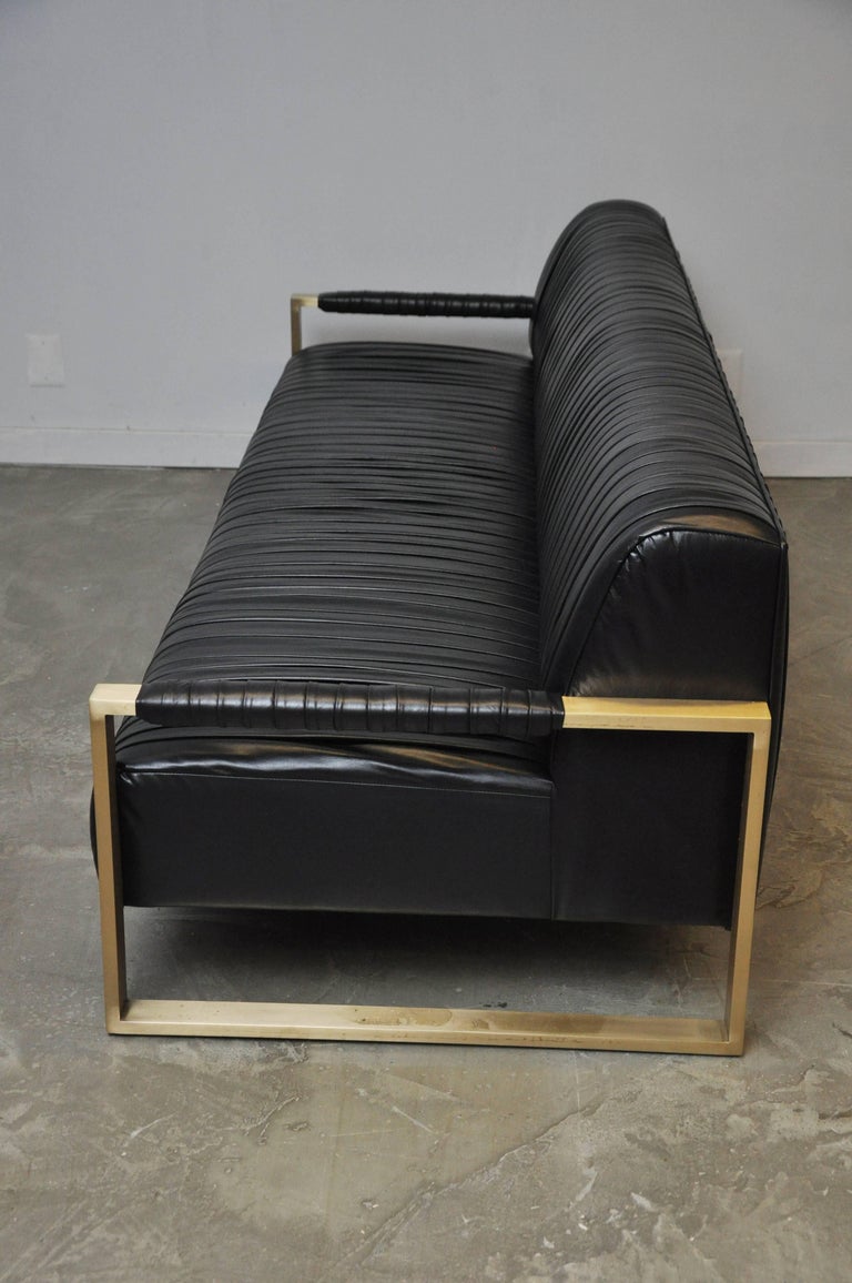 Modern Drama Pleated Leather Sofa with Brushed Brass ...