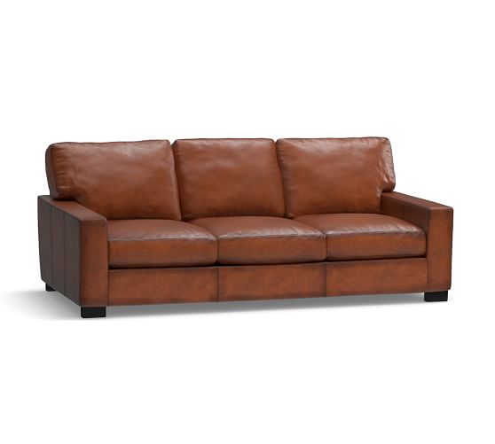 Turner Square Arm Leather Sleeper Sofa | Pottery Barn
