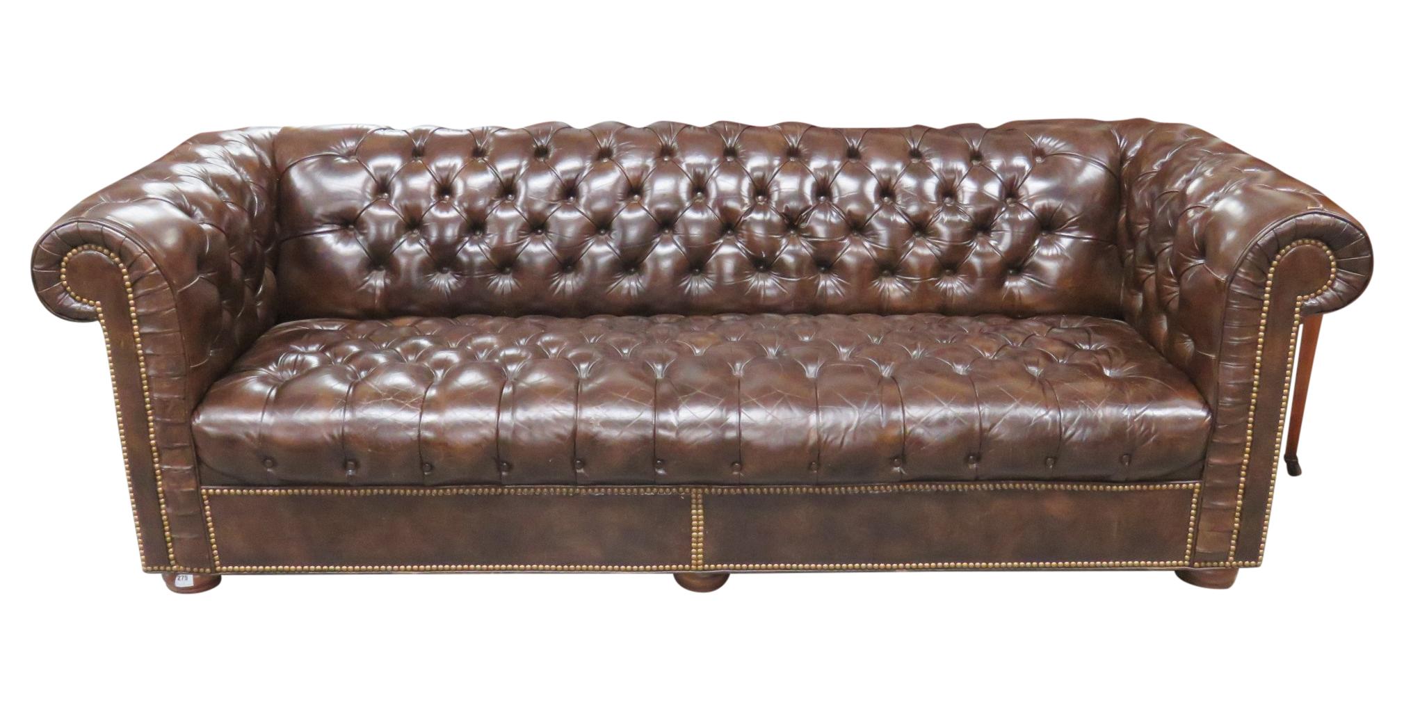 Brown Leather Tufted Chesterfield Sofa | Chairish