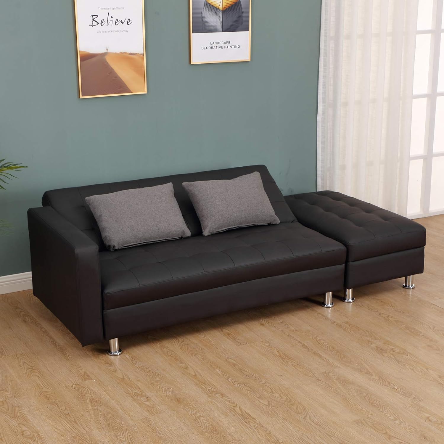 Sofa Beds Faux Leather Convertible Sofa Sleeper with ...