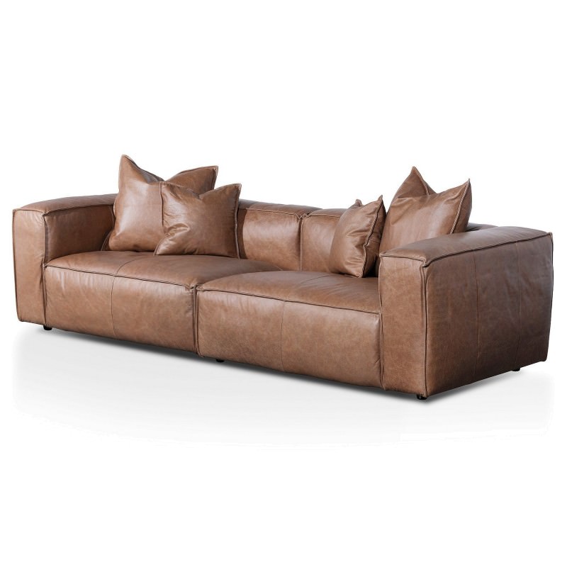 Saddle Brown Leather Sofa. Whether your saddle-brown sofa is distressed leather, chenille or microsuede, it's enhanced by effective wall color selection. Place this loveseat inside a transitional entertainment room or spacious, contemporary living room.