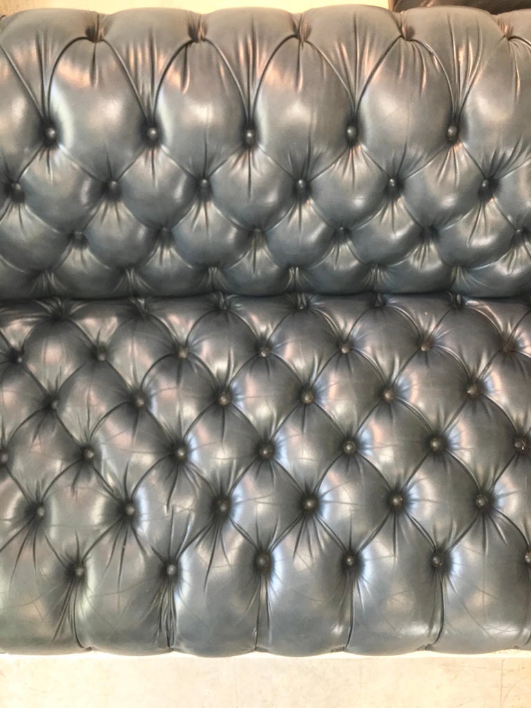 Vintage Chesterfield Sofa in Slate Blue Leather at 1stdibs