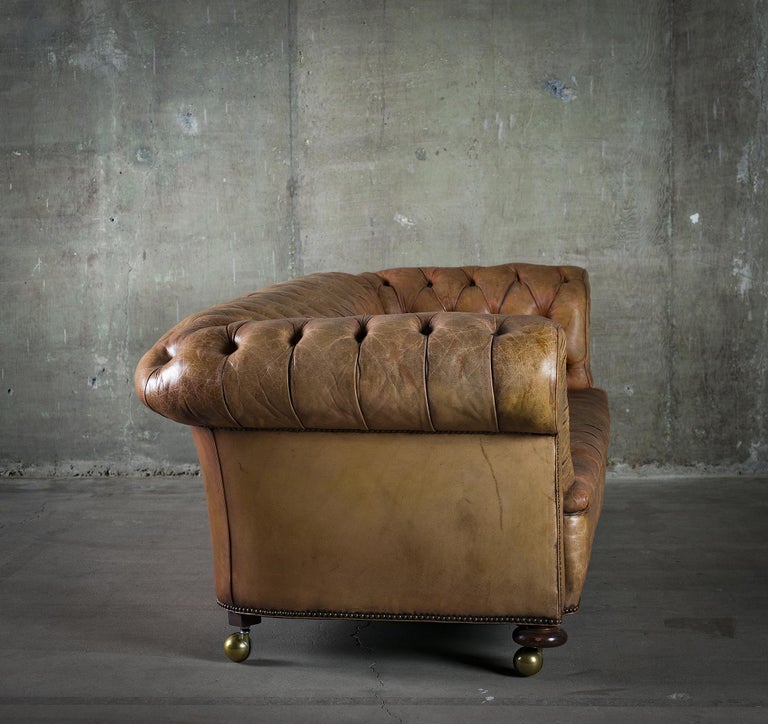 Aurelle Home Rustic Vintage Brown Top Grain Leather Sofa.