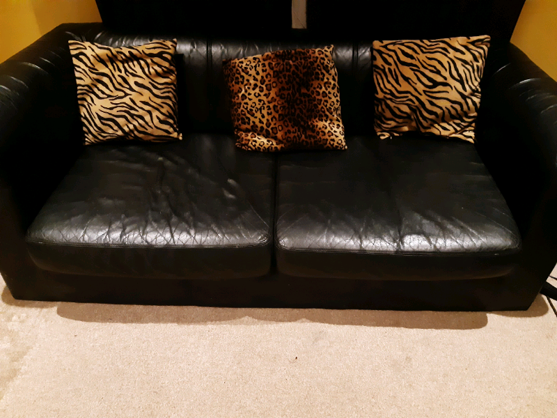 CHEAP Black Leather sofa. Excellent quality, two/three ...