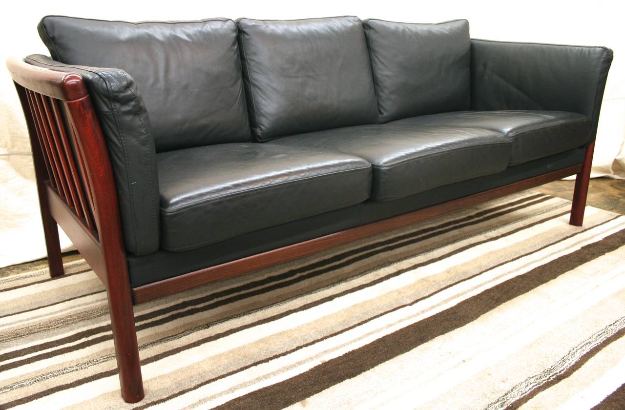 Scandinavian Modern Rosewood and Black Leather Sofa at 1stdibs