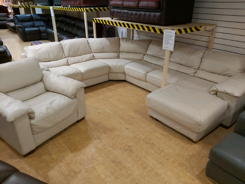FREE DELIVERY huge ivory white cream leather sofa ...