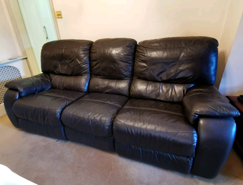 3 Seater Reclining Dark Brown Real Leather Sofa. | in ...