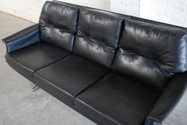 Vintage 1960s Design German Black Leather Sofa For Sale at ...