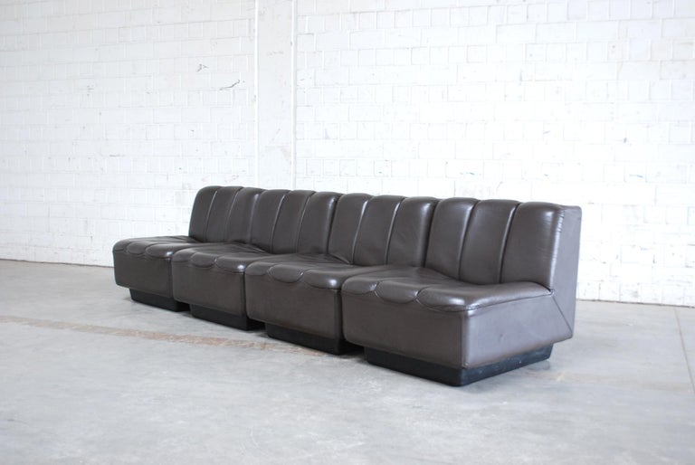 Vintage 1970s Design German Modul Brown Leather Sofa at ...